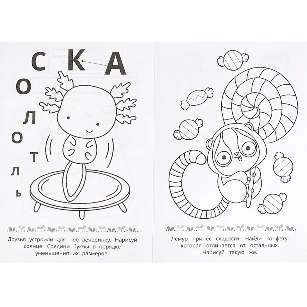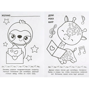 Книжка содержит картинки для раскрашивания.