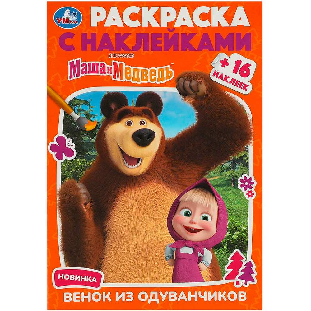 Раскраска с наклейками «Маша и Медведь. Венок из одуванчиков» ТМ «УМка» станет прекрасным подарком для детей.