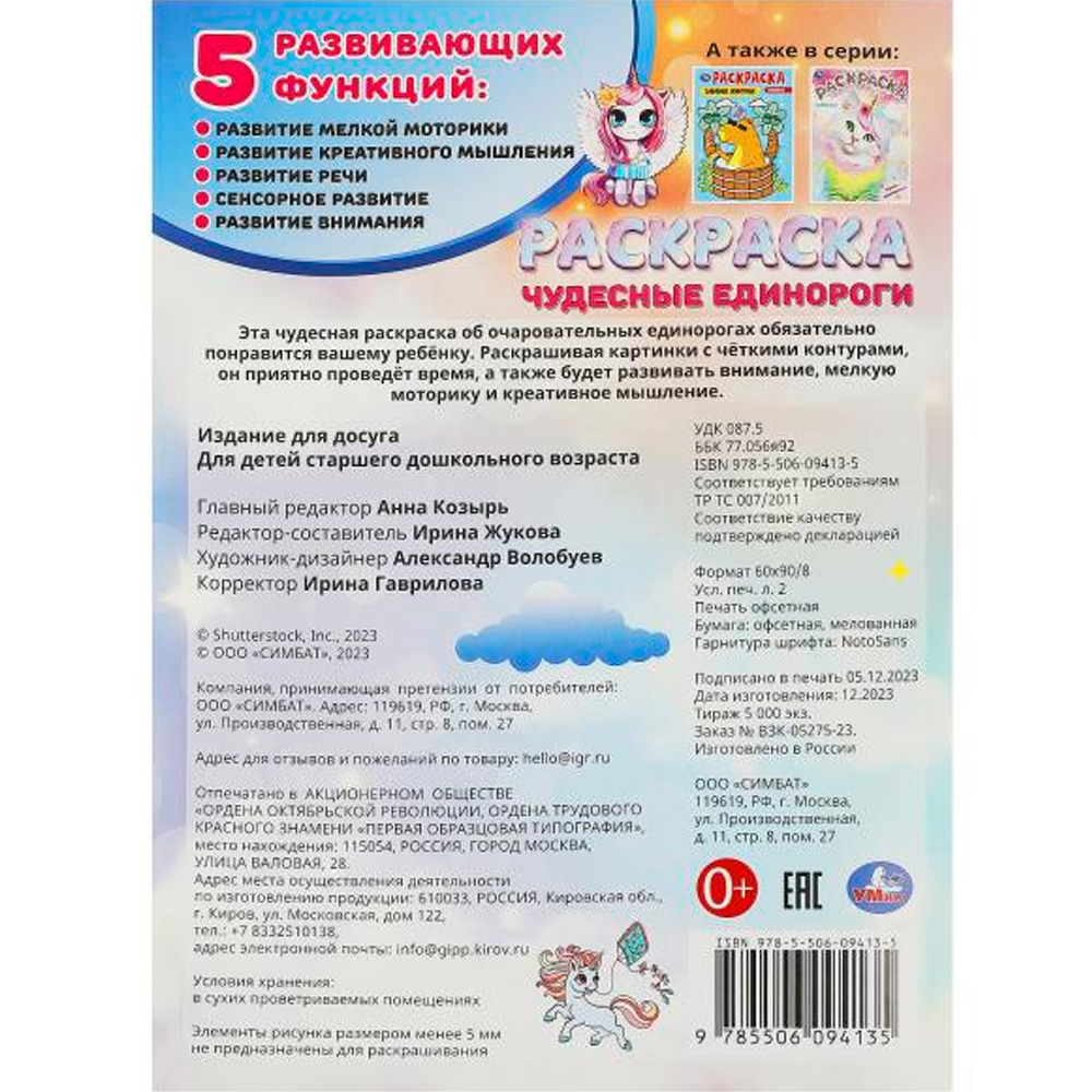 Раскраска «Чудесные единороги» ТМ «УМка» - отличный развивающий подарок для детей.
