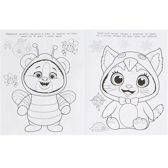 Книжка содержит картинки для раскрашивания карандашами, фломастерами или красками.