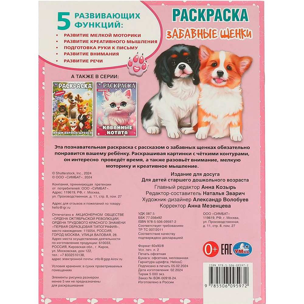 Раскраска 9785506095972 Забавные щенки