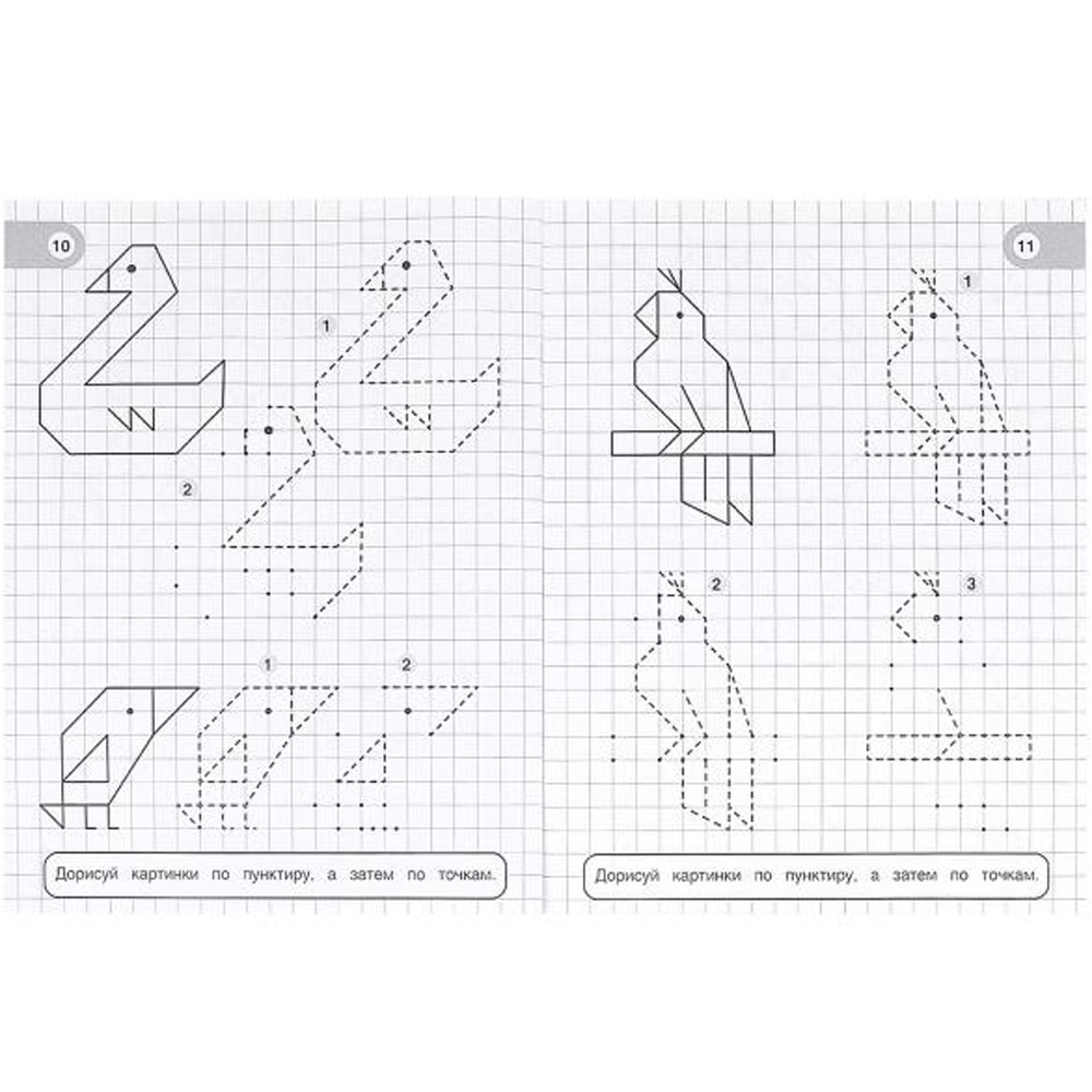 - перед раскрашиванием контур картинки нужно прорисовать, правильно соединив по клеткам — графические диктанты;