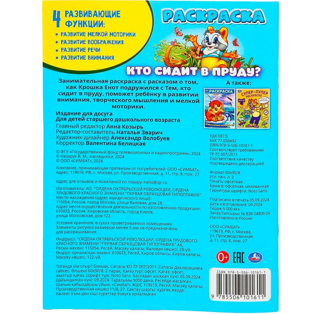 Раскраска «Кто сидит в пруду?» ТМ «УМка» - отличный подарок для юных художников.