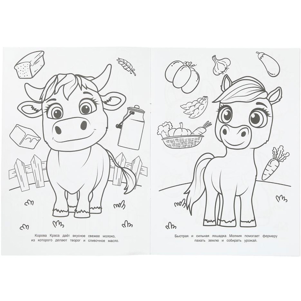 - Развитие воображения: раскрашивая, малыш может представить себя на ферме и придумать свои истории.
