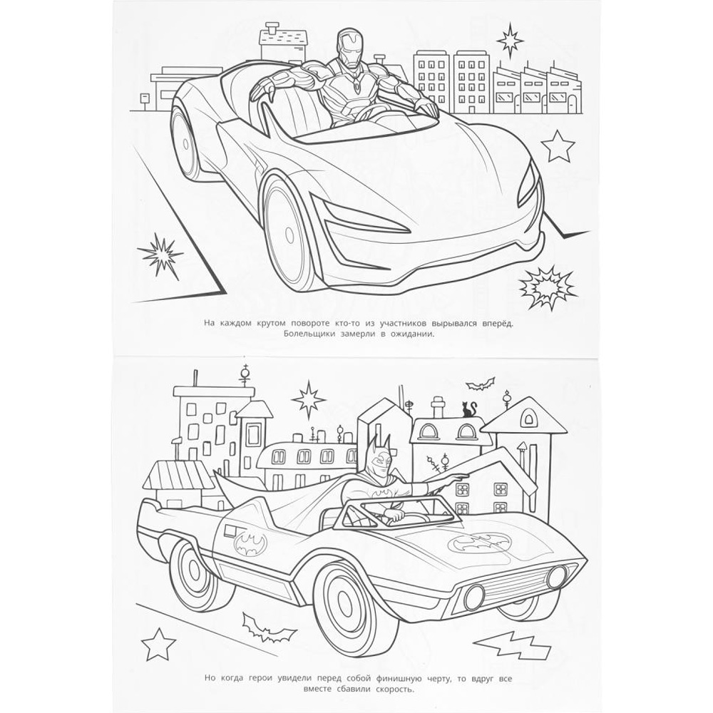 Раскраска «Супергеройские гонки» ТМ «УМка» обязательно понравится юным художникам.