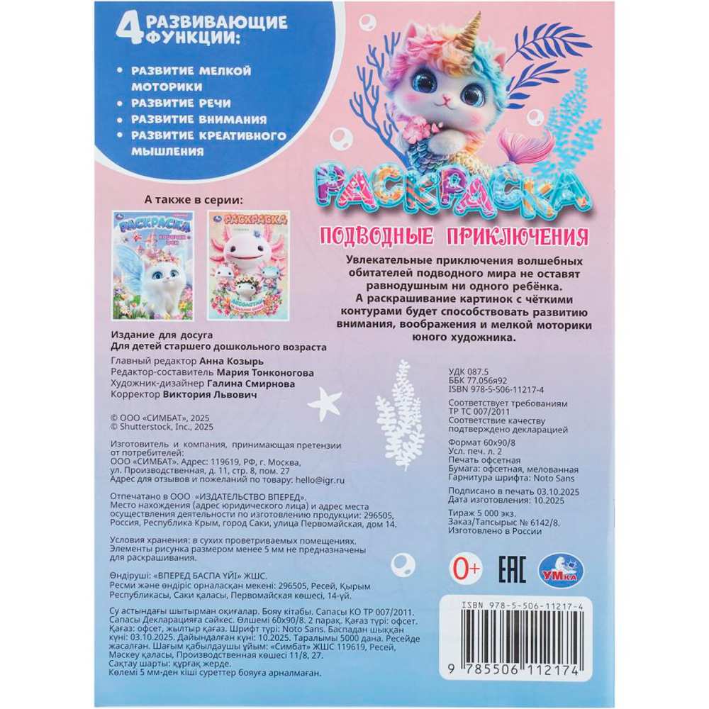 Раскраска «Подводные приключения» ТМ «УМка» – отличный подарок для юных художников.