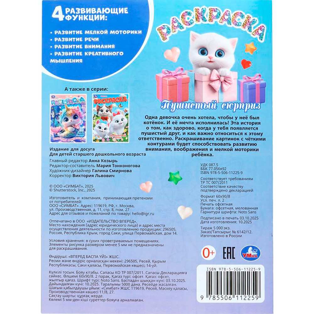 Раскраска «Пушистый сюрприз» ТМ «УМка» – отличный подарок для юных художников.