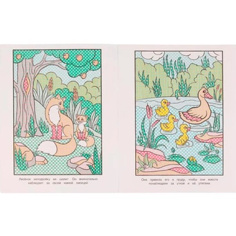 Детки с большим удовольствием раскрасят 8 веселых картинок, на которых изображены лесные зверята, и прочитает интересные истории про них. Для это понадобится только кисть и вода.
