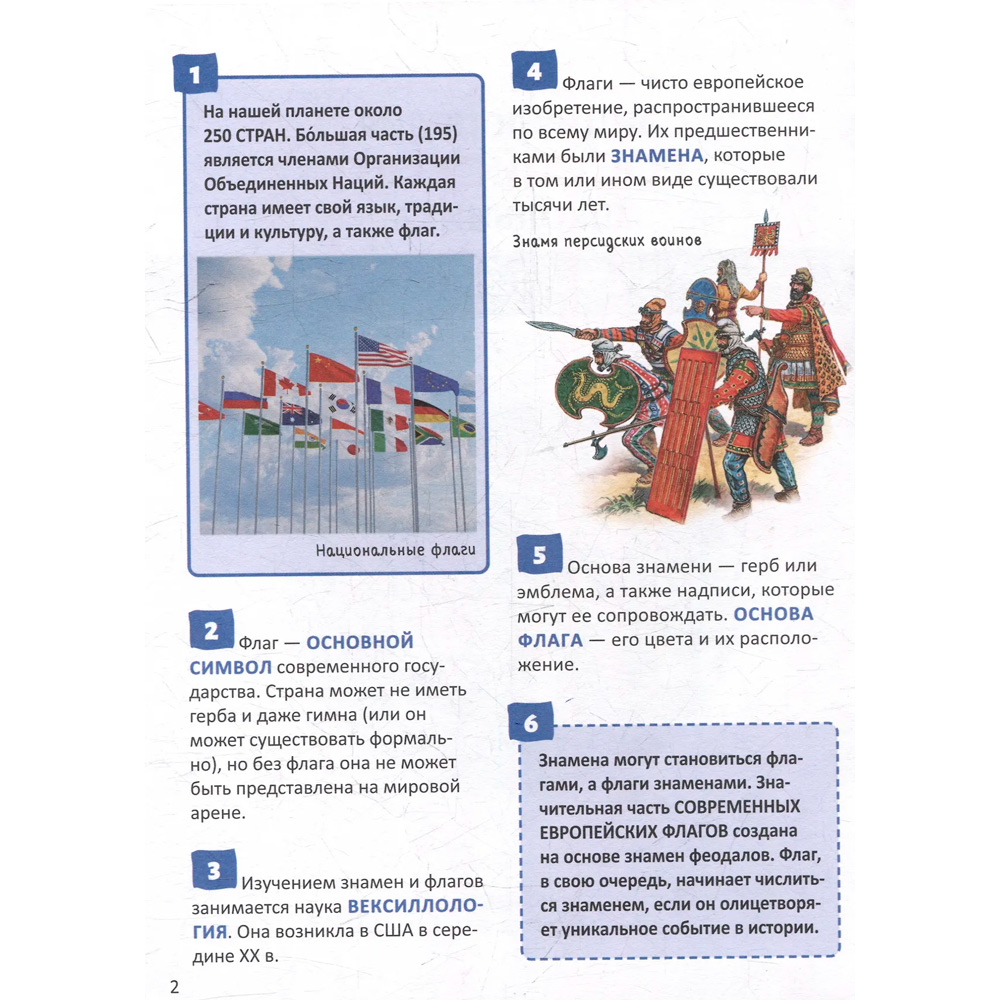 На страницах книги вас ждут 250 невероятных фактов о странах и их флагах: узнаете, как появились первые знамена и флажные традиции разных стран, почему современные флаги тесно связаны с историческими событиями, какие флаги имеют многолетнюю историю, а какие совсем молодые, а также прочтете, у чего, кроме стран, могут быть флаги и зачем создают флаги несуществующих государств.