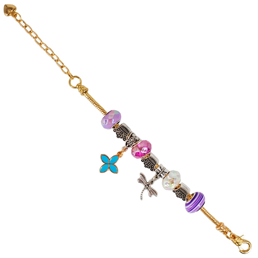 Браслет имеет стильный дизайн и будет аккуратно смотреться на ручке. Изделие украшено разноцветными шармами и оригинальными кулонами-подвесками. Застегивается на крепкий замочек. Носить браслет можно с любой одеждой.