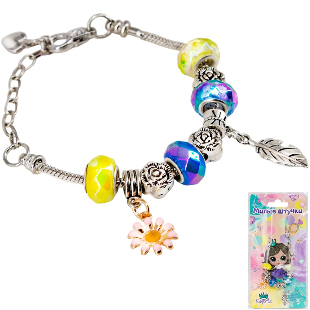 Браслет имеет стильный дизайн и будет аккуратно смотреться на ручке. Изделие украшено разноцветными шармами и оригинальными кулонами-подвесками. Застегивается на крепкий замочек. Носить браслет можно с любой одеждой.