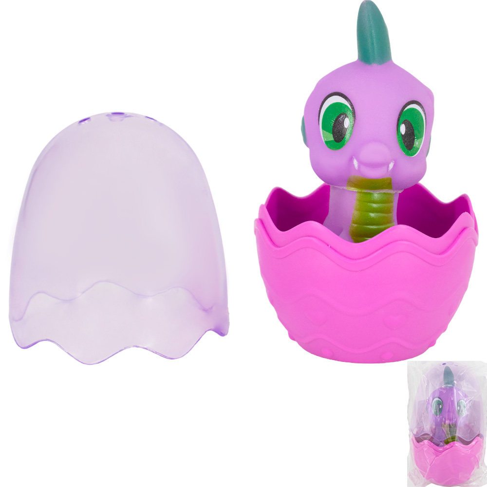 Цветное яйцо содержит игрушку-сюрприз: яркого динозаврика.