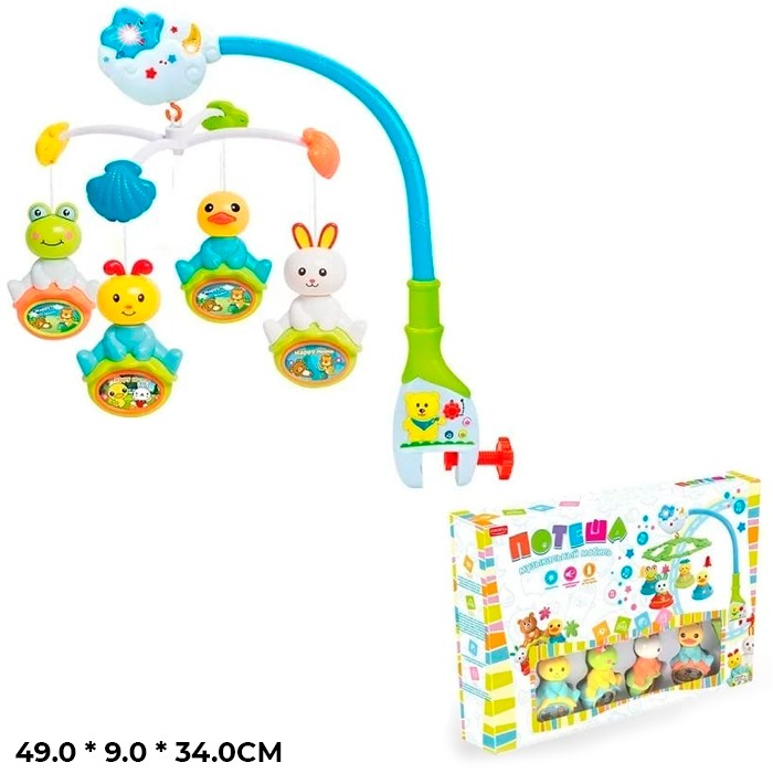Оригинальная мобильная карусель с красочными подвесками в виде забавных животных дополнит интерьер детской и станет превосходным помощником для мам. Малыши очень любят смотреть на вращающиеся игрушки и слушать приятные мелодии. Карусель крепко и надежно крепится к кроватке. Карусели в кроватку очень нравятся малышам, а пока они лежат и смотрят на крутящиеся подвески, мама может пойти заняться своими делами. Когда малыш подрастет, он станет тянуться ручками к ярким ищрушкам. Кроме того, их можно использовать в качестве самостоятельных игрушек. Карусель привлекает внимание и способствует развитию тактильного, зрительного и слу