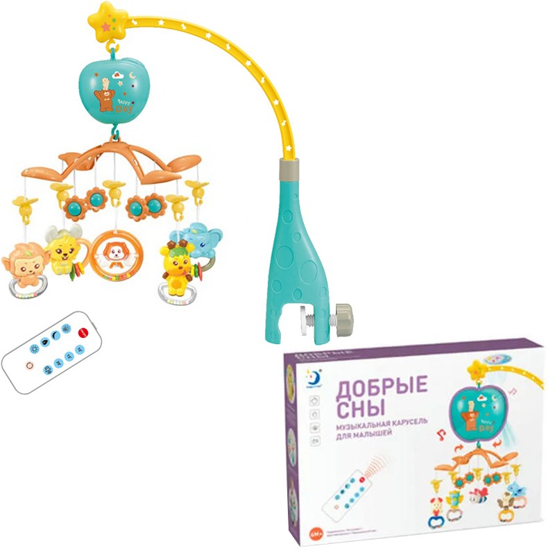 Комплектация: кронштейн - 1 шт, музыкальная игрушка - 1 шт, решетка - 1 шт, игрушки - 5 шт, инструкция - 1 шт, пульт управления - 1 шт