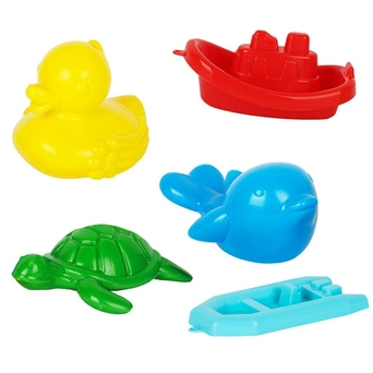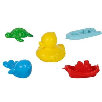 Набор предназначен для игр с водой. Развивает фантазию, мелкую моторику рук, восприятие цвета и формы. Купание малыша станет намного веселее.• В наборе фигурки дельфина, черепахи, уточка, кораблика и лодочки.