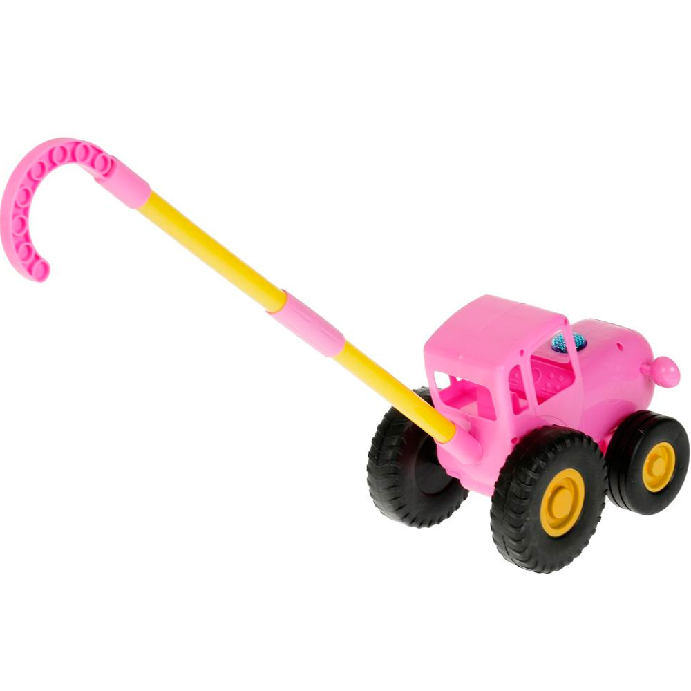Каталку нужно возить перед собой при помощи палки-толкателя, а также и за собой при помощи шнура с ручкой.