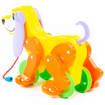 Яркая красочная каталка в виде забавной собачки - замечательный подарок малышам. Пёсик не простой, а функциональный. Его можно катать за веревочку, а при движении он будет шевелить лапками и вилять хвостиком. Он станет прекрасным подарком малышу и надолго увлечет его. Разноцветные элементы помогут малышу научиться различать цвета. Игрушка выполнена из прочных и качественных материалов.