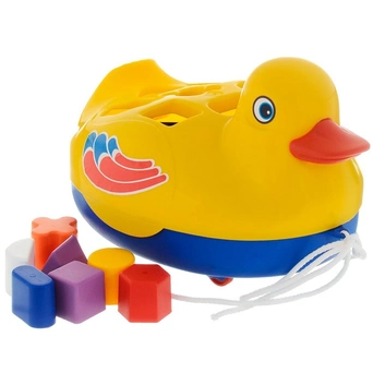 Яркая красочная каталка с функцией сортера - замечательный подарок малышам. Это не только игрушка для катания, но и яркий сортел: в корпусе расположены фигурные отверстия, куда нужно правильно разместить кубики. Также она поможет обучить малышей простому счету, дать понятия цвета и формы.