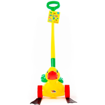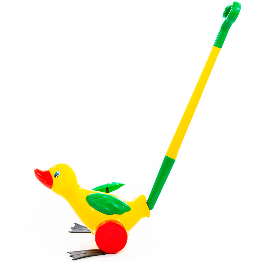 Яркая красочная каталка в виде уточки с ручкой для захвата и катания - замечательный подарок малышам. Игрушка не простая, а функциональная. Его можно катать за ручку-держатель, а уточка будет двигать лапками. Каталка станет прекрасным подарком малышу и надолго увлечет его. Разноцветные элементы помогут малышу научиться различать цвета. Игрушка выполнена из прочных и качественных материалов.