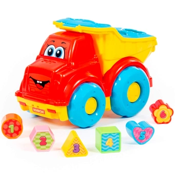 Красочная игрушка представляет собой логический самосвал. Его можно ркатать по полу. Это замечательный подарок для малыша. Куб оснащен фигурными отверстиями, в которые нужно вставлять цветные элементы, правильно подобрав их по форме. Игрушки оказывают большое влияние на физическое, умственное, эмоциональное развитие малышей, способствуют развитию речи и зрительного восприятия. Разноцветная и функциональная игрушка своими яркими цветами привлечет и надолго удержит внимание малыша. Игрушки изготовлены из безопасных и гипоаллергенных материалов, прочных и износостойких. Игры помогают развить остроту зрения и слуха, цветовосприятие, тактильную чувствительность, мелкую моторику, концентрацию внимания.