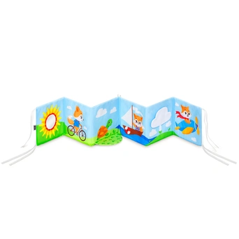 Мягкая книжка-раскладушка предназначена для развития тактильных ощущений и мелкой моторики.