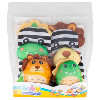- внутри игрушек пластиковые шарики, которые создают звук погремушки