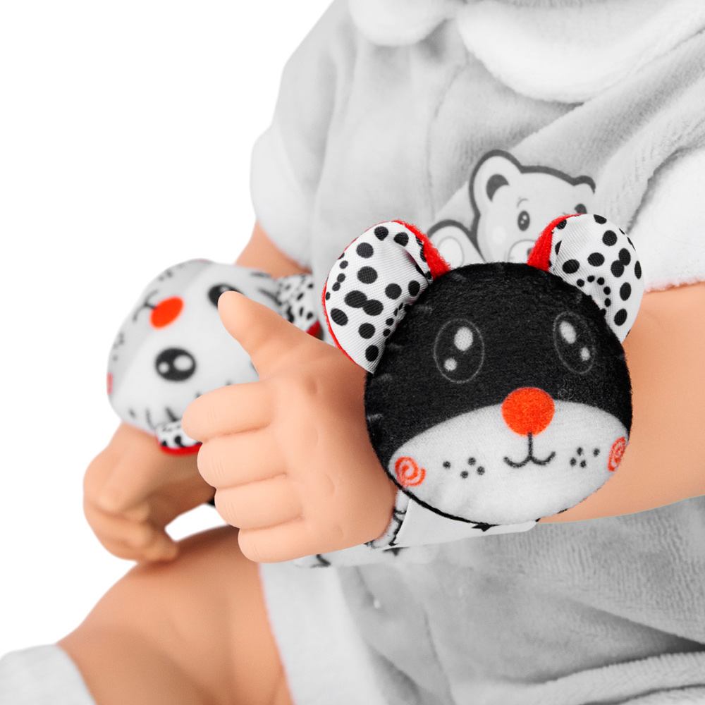 - внутри игрушек пластиковые шарики, которые создают звук погремушки