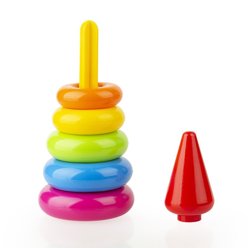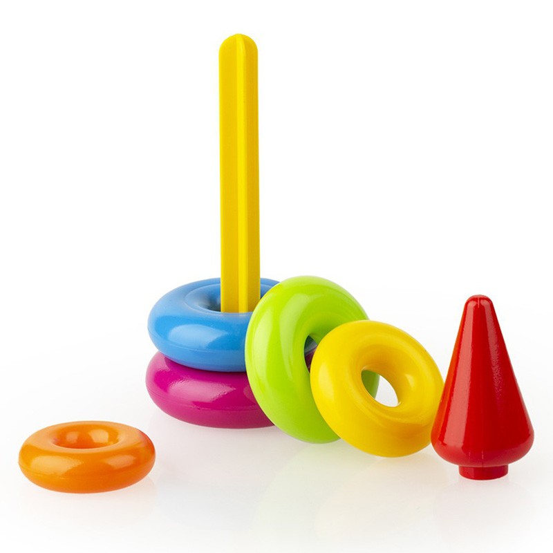 Задача малыша — собрать кольца в правильной последовательности (от самого большого до самого маленького).