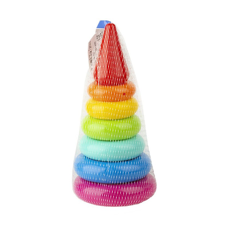 Пирамидка представляет собой набор постепенно уменьшающихся по величине разноцветных колец, надеваемых на стержень.