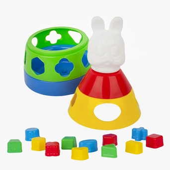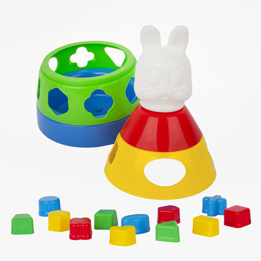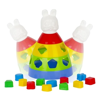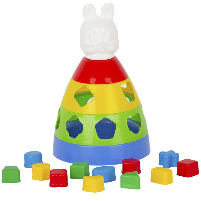 Игра Пирамида с 12 логическими фигурами 27 см. – 4-х ярусная пластмассовая пирамида с наконечником в виде головы зайца. Ширина основания 16 см ,высота 27 см. 2 и 3 ярус имеют отверстия для логических фигур. Данная пирамидка отличается от привычных для нас пирамидок ещё и тем, что ее основание качается, если немного подтолкнуть. Игрушка развивает моторику, координацию, логику воображение. Знакомит ребёнка с цветами, формами.Игрушка изготовлена из высококачественных материалов. Изделие проверено на соответствие требованиям технических регламентов Таможенного Союза и имеет сертификацию ЕАС.
