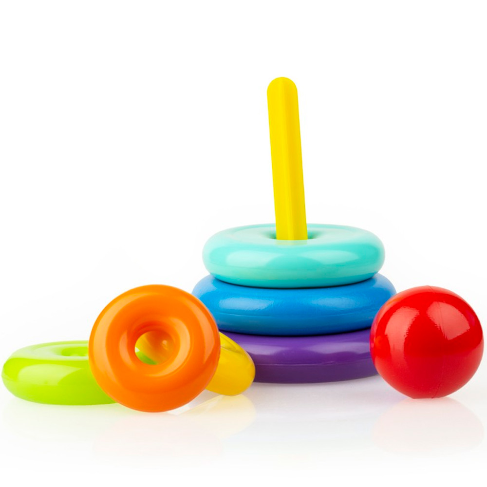Задача малыша — собрать кольца в правильной последовательности (от самого большого до самого маленького).