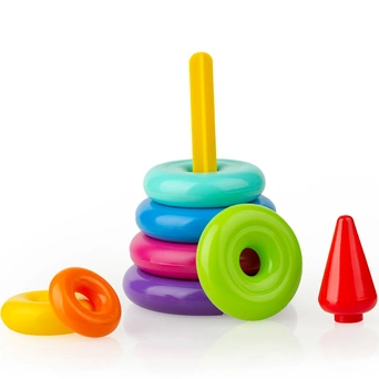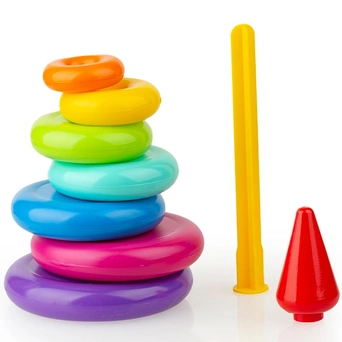 Задача малыша — собрать кольца в правильной последовательности (от самого большого до самого маленького).