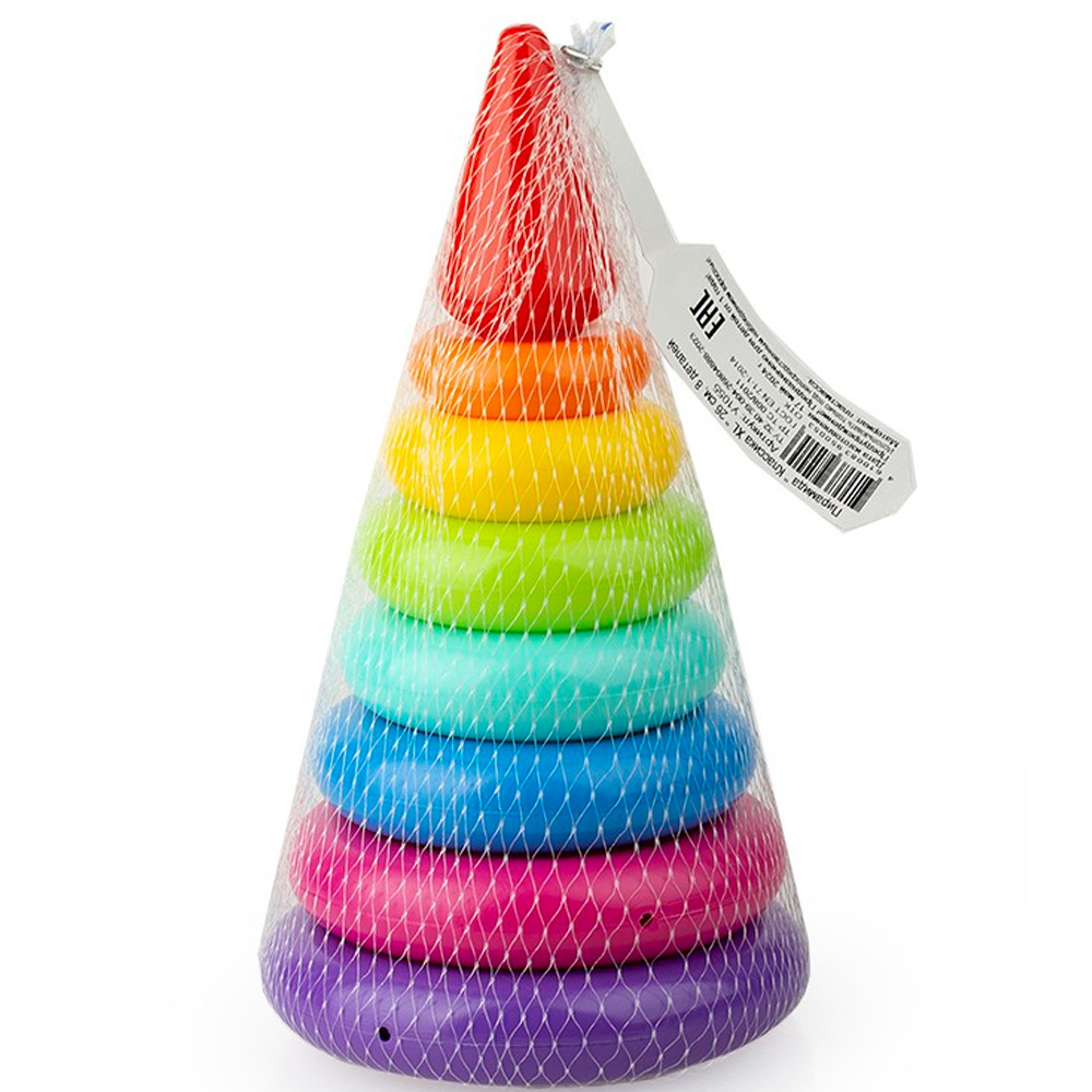 Пирамидка представляет собой набор постепенно уменьшающихся по величине разноцветных колец, надеваемых на стержень.