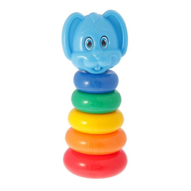 Пирамидка 5 колец "Зайка" — одна из первых развивающих игрушек малыша, которая состоит из основы-стержня, круглых колец и наконечника в виде забавной мордочки животного.