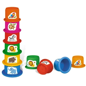 Это яркая и увлекательная пирамидка, в виде разноцветных стаканчиков, на которых изображены обитатели Зоопарка.