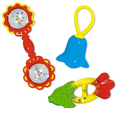 Игрушки оказывают огромное влияние на физическое, умственное, эмоциональное развитие маленьких детей, способствуют развитию речи и зрения. Малыш, лежа в кроватке, разглядывает игрушку, концентрирует на ней внимание и проявляет интерес, начинает тянуться за погремушкой и совершает первые движения, учится фокусировать внимание на ярких цветах и начинает различать их. Набор содержит разноцветные и фун