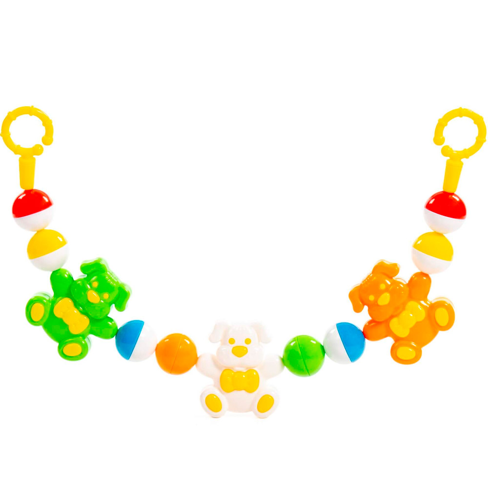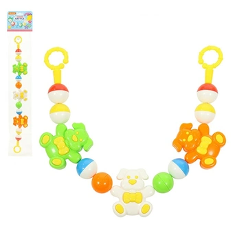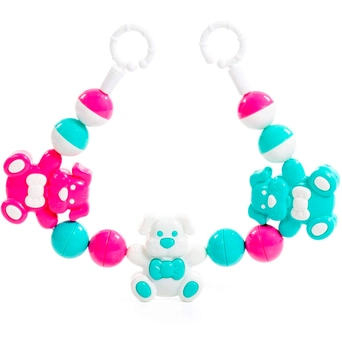 Красочная подвеска с яркими шариками и фигурками животных - это замечательный подарок для малыша. Погремушку можно прикрепить на коляску или кроватку - для этого у нее предусмотрены с обоих концов специальные крепления. Она издает звук от находящихся внутри элементов. Игрушки оказывают огромное влияние на физическое, умственное, эмоциональное развитие маленьких детей, способствуют развитию речи и зрения. Малыш, лежа в кроватке, разглядывает игрушку, концентрирует на ней внимание, начинает тянуться за погремушкой и пробовать координировать свои движения, фокусирует взгляд на ярких цветах и начинает различать их. Разноцветная и функциональная игрушка своими насыщенными цвета