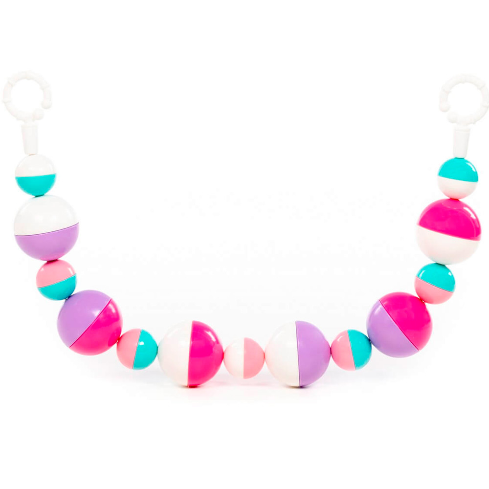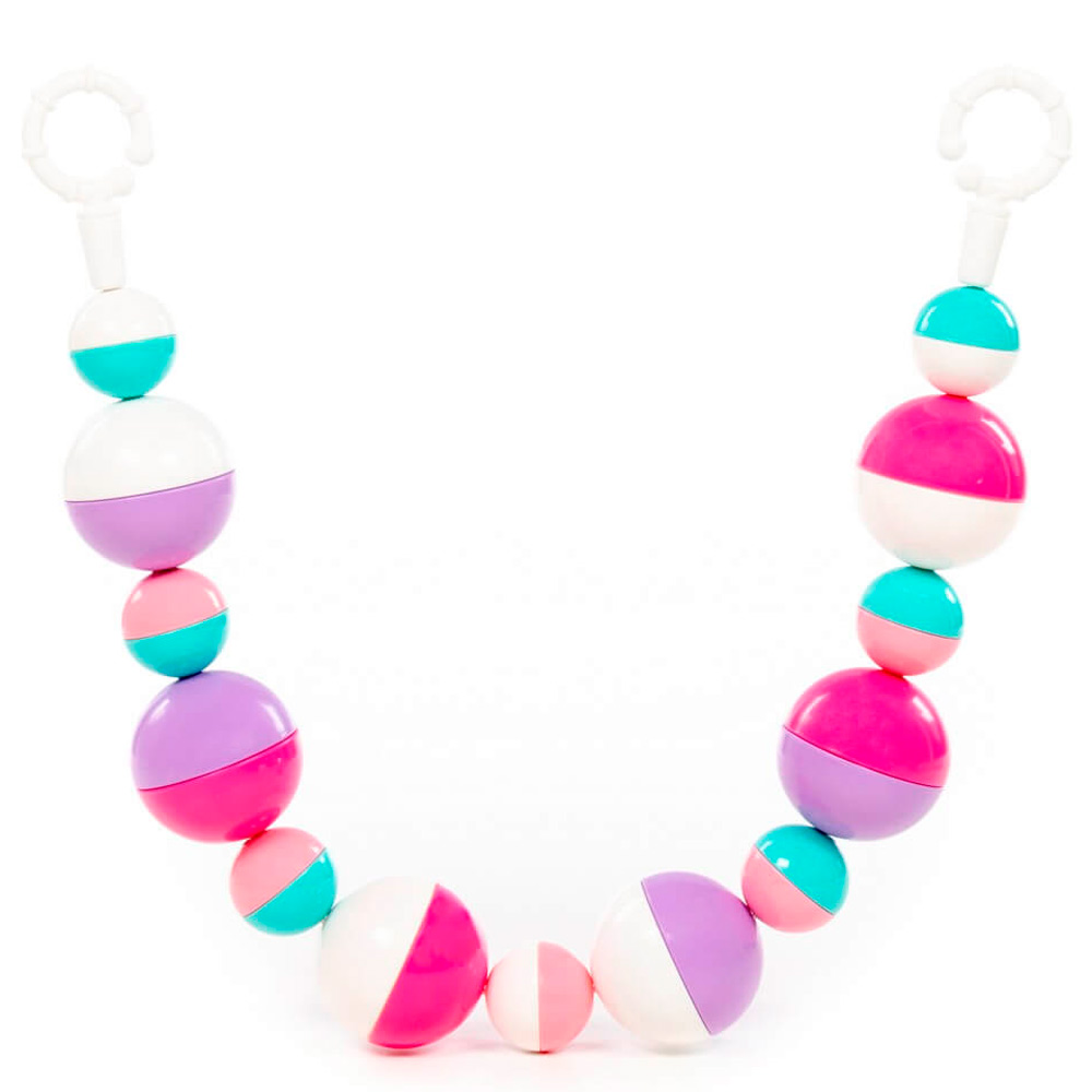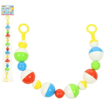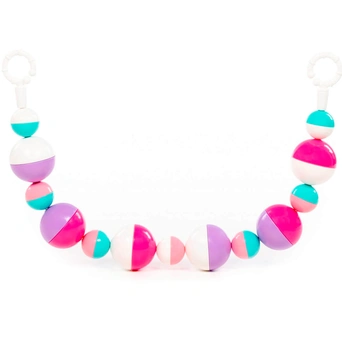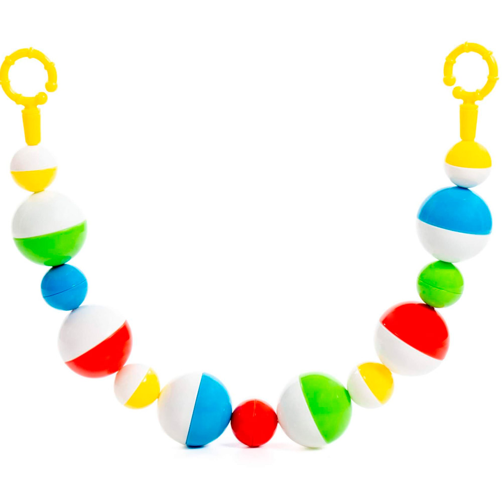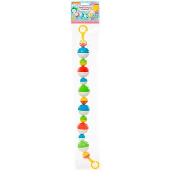 Красочная подвеска с яркими шариками разных размеров - это замечательный подарок для малыша. Погремушку можно прикрепить на коляску или кроватку - для этого у нее предусмотрены с обоих концов специальные крепления. Она издает звук от находящихся внутри элементов. Игрушки оказывают огромное влияние на физическое, умственное, эмоциональное развитие маленьких детей, способствуют развитию речи и зрения. Малыш, лежа в кроватке, разглядывает игрушку, концентрирует на ней внимание, начинает тянуться за погремушкой и пробовать координировать свои движения, фокусирует взгляд на ярких цветах и начинает различать их. Разноцветная и функциональная игрушка своими насыщенными цветами при