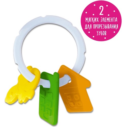«Прорезыватель с погремушкой» – необходимая игрушка для младенца. Она развивает малыша и помогает снять боль в деснах. Сам прорезыватель имеет удобную для захвата форму кольца, на котором расположены разноцветные подвесные элементы. Малыш может трясти игрушку, издавая звуки; передвигать пальчиками подвесные элементы или пробовать «на вкус».Для детей от 0 мес. Развивает остроту зрения и слуха, цветовосприятие, тактильную чувствительность, мелкую моторику. Формирует зрительно-моторную и зрительно-слуховую координацию.