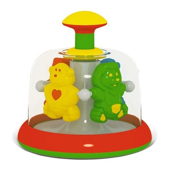 Красочная юла необычной формы имеет прозрачный корпус. Внутри расположены цветные фигурки. Это замечательный подарок для малыша. Изделие имеет яркую расцветку. Устойчивости игрушке придает плоское дно. При нажатии на ручку разноцветные фигурки в корпусе юлы катаются по кругу. Занятия с игрушкой помогут малышу развить двигательную активность, концентрацию внимания, координацию движений, слух, цветовое и тактильное восприятие.