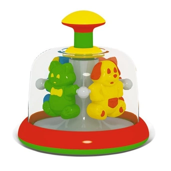 Красочная юла необычной формы имеет прозрачный корпус. Внутри расположены цветные фигурки. Это замечательный подарок для малыша. Изделие имеет яркую расцветку. Устойчивости игрушке придает плоское дно. При нажатии на ручку разноцветные фигурки в корпусе юлы катаются по кругу. Занятия с игрушкой помогут малышу развить двигательную активность, концентрацию внимания, координацию движений, слух, цветовое и тактильное восприятие.