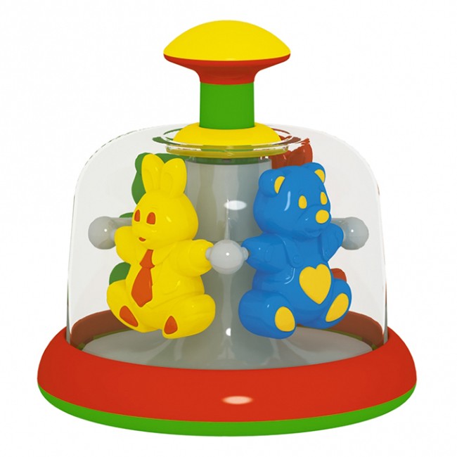 Красочная юла необычной формы имеет прозрачный корпус. Внутри расположены цветные фигурки. Это замечательный подарок для малыша. Изделие имеет яркую расцветку. Устойчивости игрушке придает плоское дно. При нажатии на ручку разноцветные фигурки в корпусе юлы катаются по кругу. Занятия с игрушкой помогут малышу развить двигательную активность, концентрацию внимания, координацию движений, слух, цветовое и тактильное восприятие.