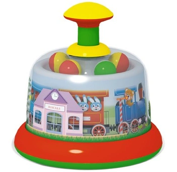 Красочная юла необычной формы имеет прозрачный корпус. Внутри в два ряда расположены цветные шарики и яркая картинка. Это замечательный подарок для малыша. Изделие имеет яркую расцветку. Устойчивости игрушке придает плоское дно. При нажатии на ручку разноцветные шарики в корпусе юлы катаются по кругу. Занятия с игрушкой помогут малышу развить двигательную активность, концентрацию внимания, координацию движений, слух, цветовое и тактильное восприятие.