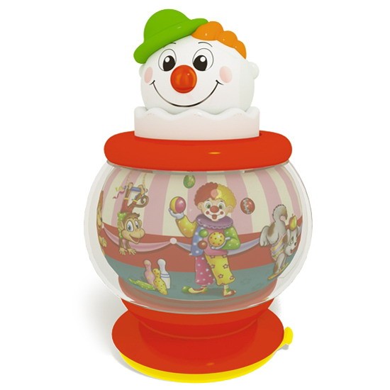 Размер упаковки : 9 x 9 x 15 см;Карусель «Шапито» - это новый образ традиционной юлы. Вместо рукоятки малышу нужно просто похлопать клоуна по голове. От прикосновений малыша карусель начинает крутиться, и картинка на ней «оживет». Детям нравится наблюдать за движением картинок, тем более, что они могут сами влиять на скорость вращения карусели.