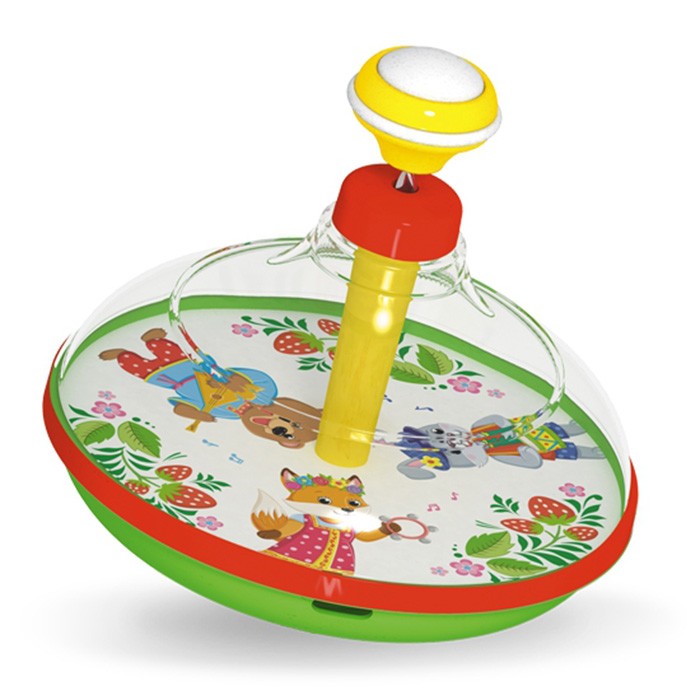 Ваш ребенок с большим любопытством будет рассматривать яркие детали игрушки, пробовать запускать юлу легким нажатием рычажка, наблюдать за ее невероятным и как будто бы волшебным вращением и слушать при этом приятную мелодию.