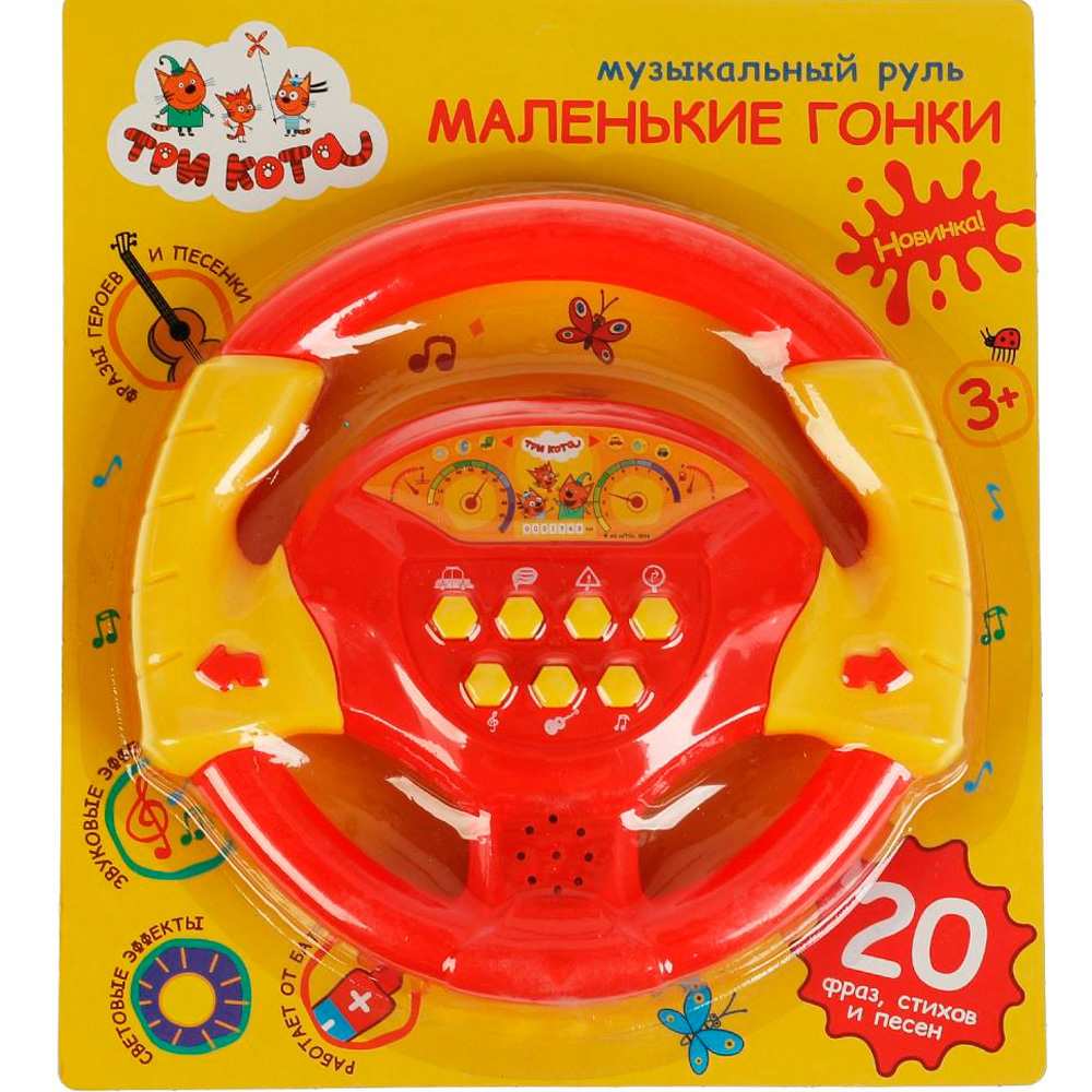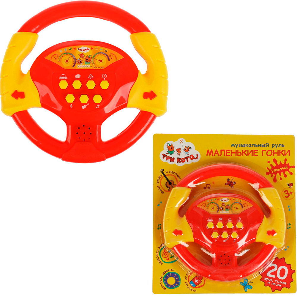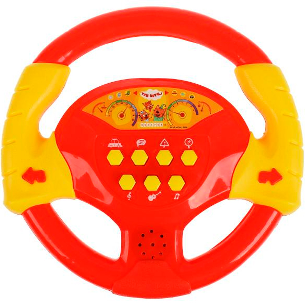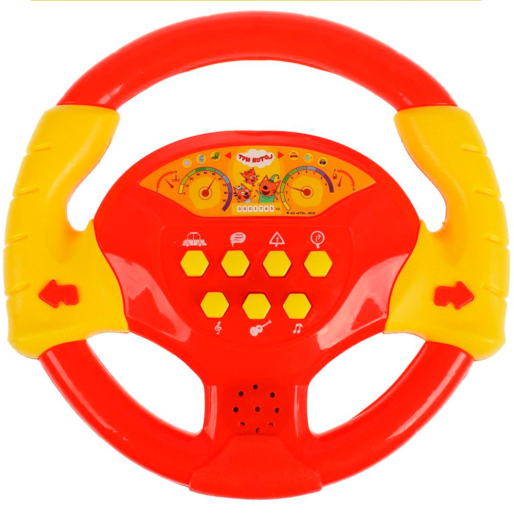 Музыкальный руль с любимыми героями мультфильма "Три кота". Оригинальная музыкальная игрушка Руль предназначена для активных игр и развития мелкой моторики и координации движений. Яркая расцветка развлечет малыша и привлечет его внимание. Руль оснащен кнопками, нажимая на которые малыш сможет услышать различные звуки и мелодии. Игрушка учит пониманию причинно-следственной связи, помогает тренировать моторику и координацию движений, восприятие формы и цвета. Игрушка привлекает внимание и способствует развитию тактильного, зрительного и слухового восприятия малыша. Игрушки сделаны из прочного и безопасного материала.