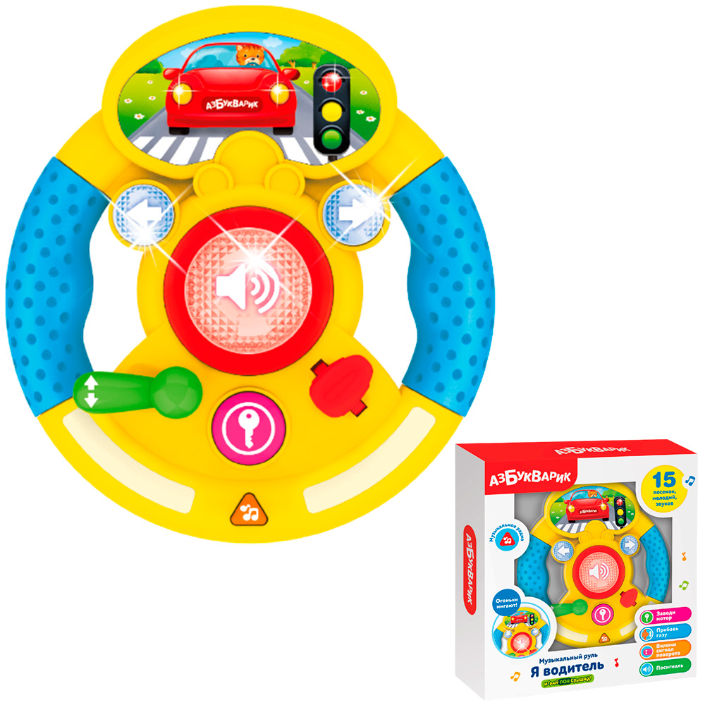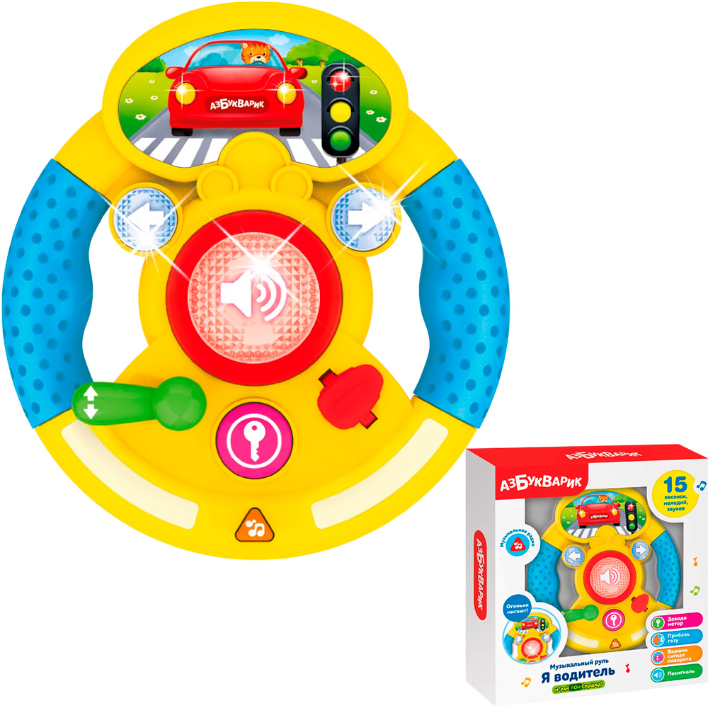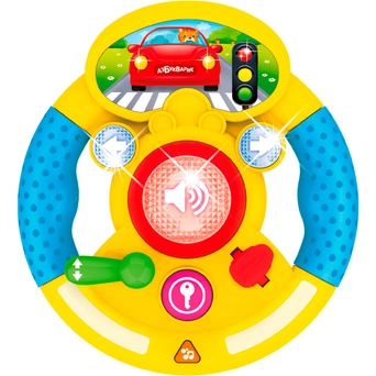 Оригинальная музыкальная игрушка руль предназначена для активных игр и развития мелкой моторики и координации движений.