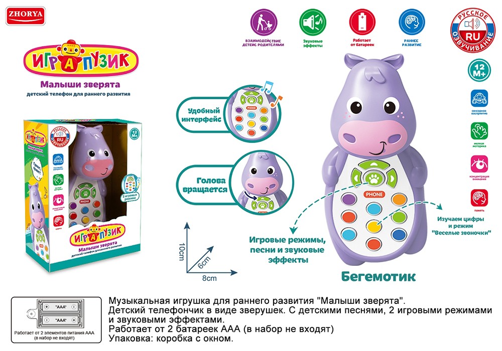 - для работы игрушки необходимы 2 батареи ААА 1.5V (не входят в комплект)
