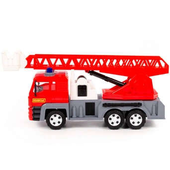 Пожарный автомобиль из серии "Алмаз" имеет максимальное сходство со своим прототипом - настоящей машиной огнеборцев. Автомобиль оснащен инерционным механизмом, благодаря которому может преодолевать некоторое расстояние по ровной прямой поверхности, если потянуть его назад и отпустить. Кроме того, игрушка оснащена подвижной поворотной платформой и подъемной стрелой, что сделает игры максимально реалистичными.
