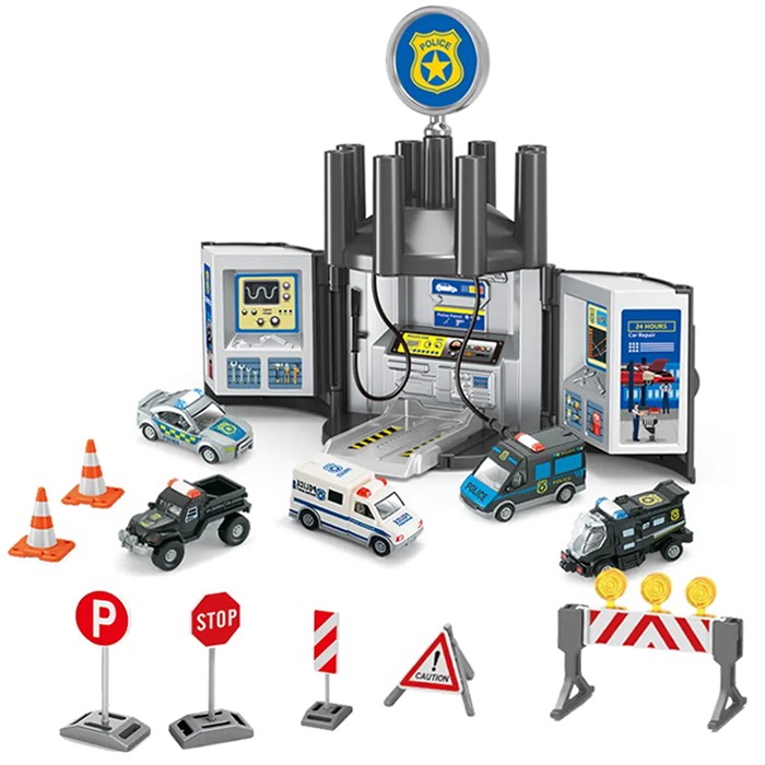 Размер упаковки: 44,5*35,5*13 смФункционал: инерционный механизм, раскладная станция, игровой набор